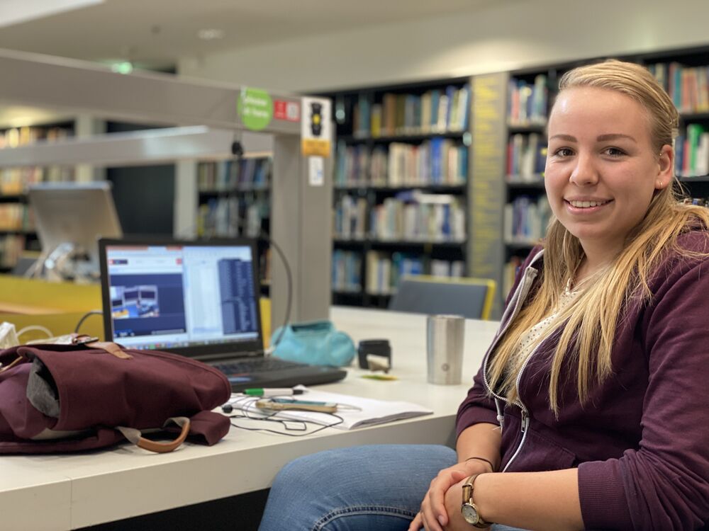 Een studieplek reserveren kan voor twee uur, maar je kunt meerdere blokken achter elkaar boeken via BookMySpace, weet Melanie inmiddels.