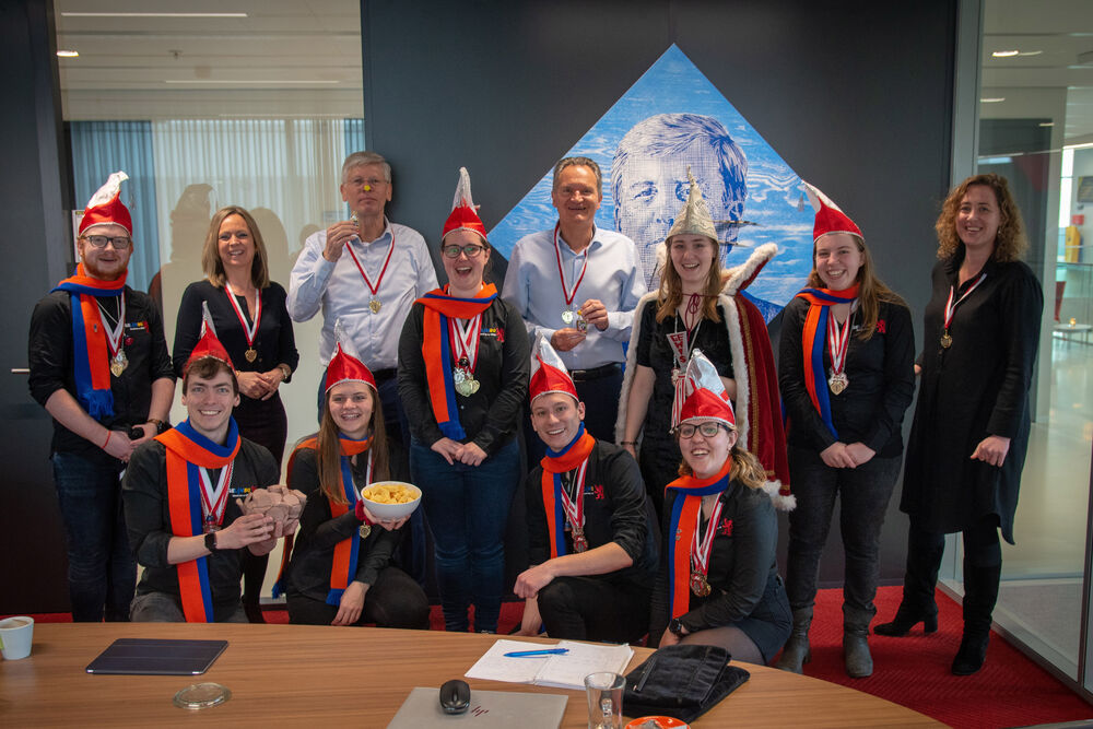 Tweemaal is Evie meegeweest in het gevolg van de prins op de tocht langs de borrelruimtes en kantoren van de TU/e. Ze weet nog goed hoe grappig het was dat zij het College van Bestuur onderwierpen aan een quiz waarbij carnavalsliedjes geraden moesten worden. Cursor was er niet bij, maar Evie zegt dat Nicole Ummelen de meeste punten pakte.