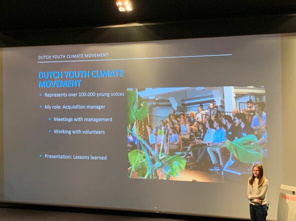 Lisa van der Geer acquisitiemanager bij de Jonge Klimaatbeweging en bachelorstudent Scheikunde komt spreken vanuit het perspectief van de jongeren, “de groep die bij uitstek zal moeten dealen met de gevolgen van de door volwassenen veroorzaakte klimaatverandering. “Klimaatverandering is een keus, en het is een slechte keus. De oplossingen zijn niet eenduidig.” Van der Geer hoopt met haar studie en haar rol in de Jonge Klimaatbeweging toch haar bijdrage te kunnen leveren en iedereen te kunnen betrekken bij het beschermen van het klimaat. “Echt iedereen, niet alleen rijke linkse stemmers.” Daarvoor moet volgens haar klimaatbeleid simpeler worden gepresenteerd, omdat anders veel mensen niet meer begrijpen wat de bedoeling is. De Jonge Klimaatbeweging heeft daar zelf een poging toe gedaan en hun plan aangeboden aan minister Jetten. Maar plannen maken staat niet bovenaan het lijstje van Van der Geer. Ze wil vooral actie. Nu. “Politici horen dat niet graag, die schrijven liever plannen zodat ze geen vieze handen krijgen. En dat plan is dan voor 2030. Dat is te laat.”