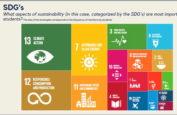 Een enquête uitgevoerd door het GO Green Office onder 500 studenten liet zien dat zij veel belang hechten aan klimaat, groene consumptie en productie, schone energie en duurzaam wonen.