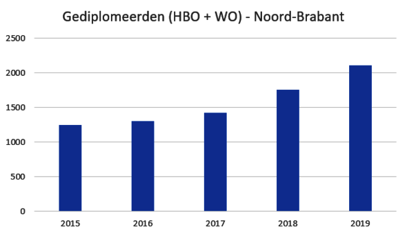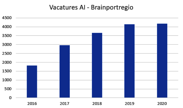 Het aantal Artificial Intelligence (AI) vacatures in deze regio is de afgelopen vijf jaar ruim verdubbeld. Van 1821 nieuw geplaatste vacatures in 2016 tot 4173 in 2020, blijkt uit een monitor van Brainport. Het totale aantal vacatures op AI-gebied is nog groter. Helaas zijn er lang niet genoeg mensen om al die vacatures te vullen en blijkt de samenstelling van de populatie niet te voldoen aan wat het bedrijfsleven zoekt. De TU/e gaat dat proberen bij te schaven met een programma voor het bedrijfsleven en een Brainport AI-cursus.